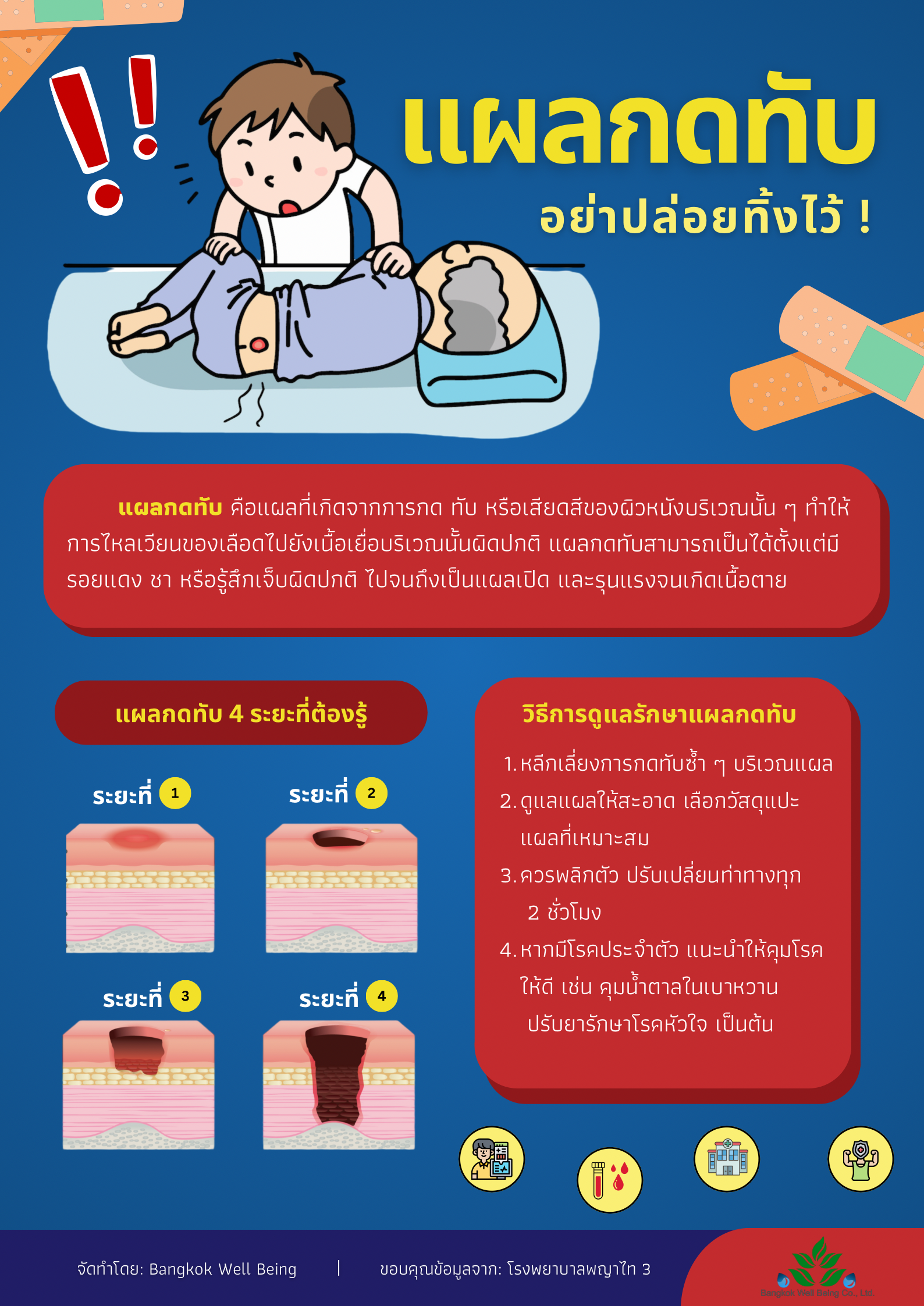 หากมีอาการผิดสังเกต หรือแผลที่เป็นไม่ดีขึ้นภายใน 48 ชั่วโมง ควรรีบพบแพทย์ทันทีนะคะ เพราะอาจเกิดการติดเชื้อจากแผลกดทับซึ่งทำให้เกิดอันตรายถึงชีวิตได้