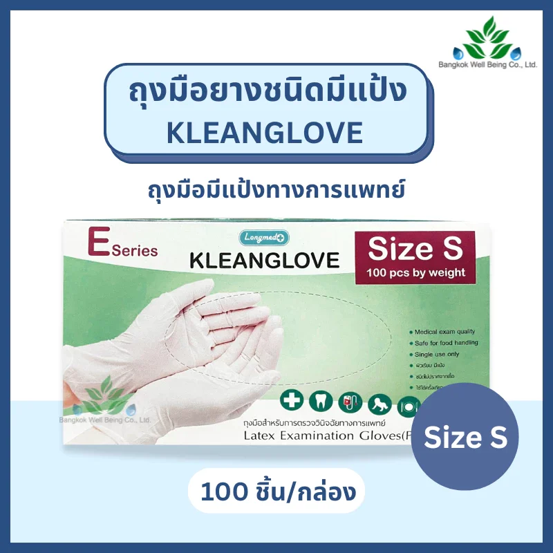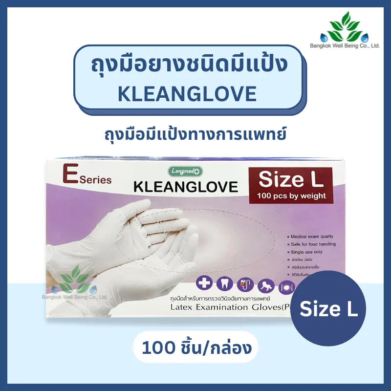 LONGMED ถุงมือ Kleanlove ถุงมือชนิดมีแป้ง