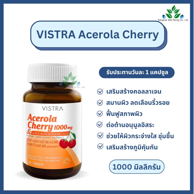 VISTRA Acerola Cherry 1000 mg. วิสทร้า อะเซโรลาเชอร์รี่